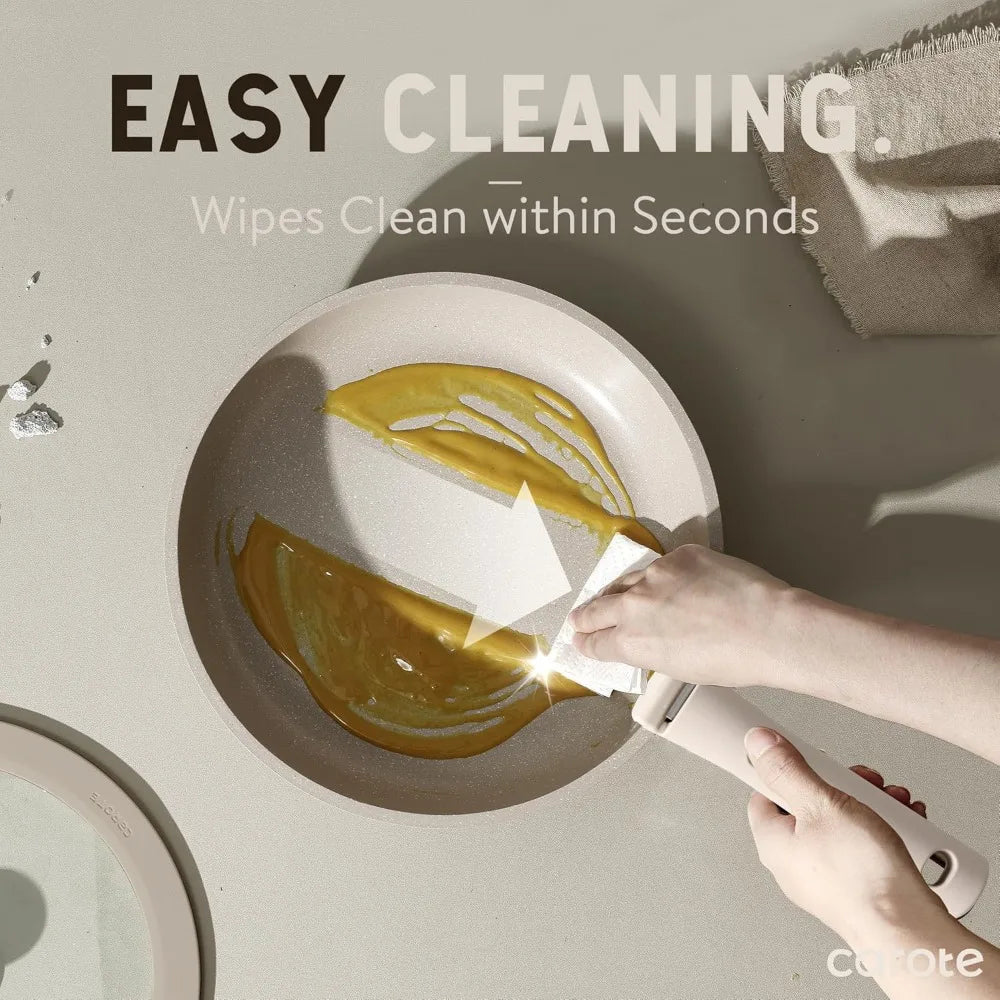 Cook smarter and save space with this 16-piece nonstick cookware set, featuring detachable handles for easy storage and versatility. Designed for all stovetops, including induction, this set is perfect for modern kitchens, allowing you to switch seamlessly from stovetop to oven.