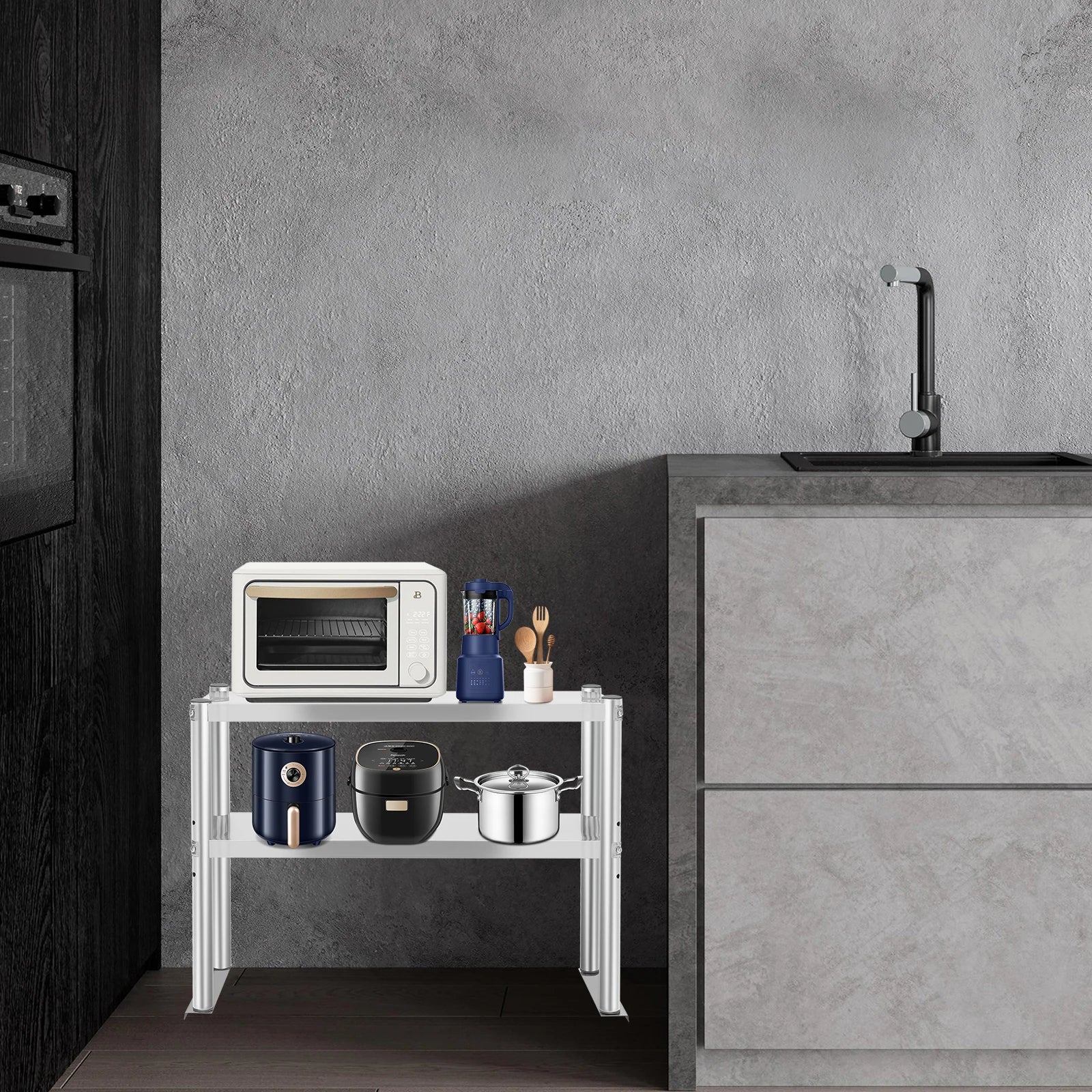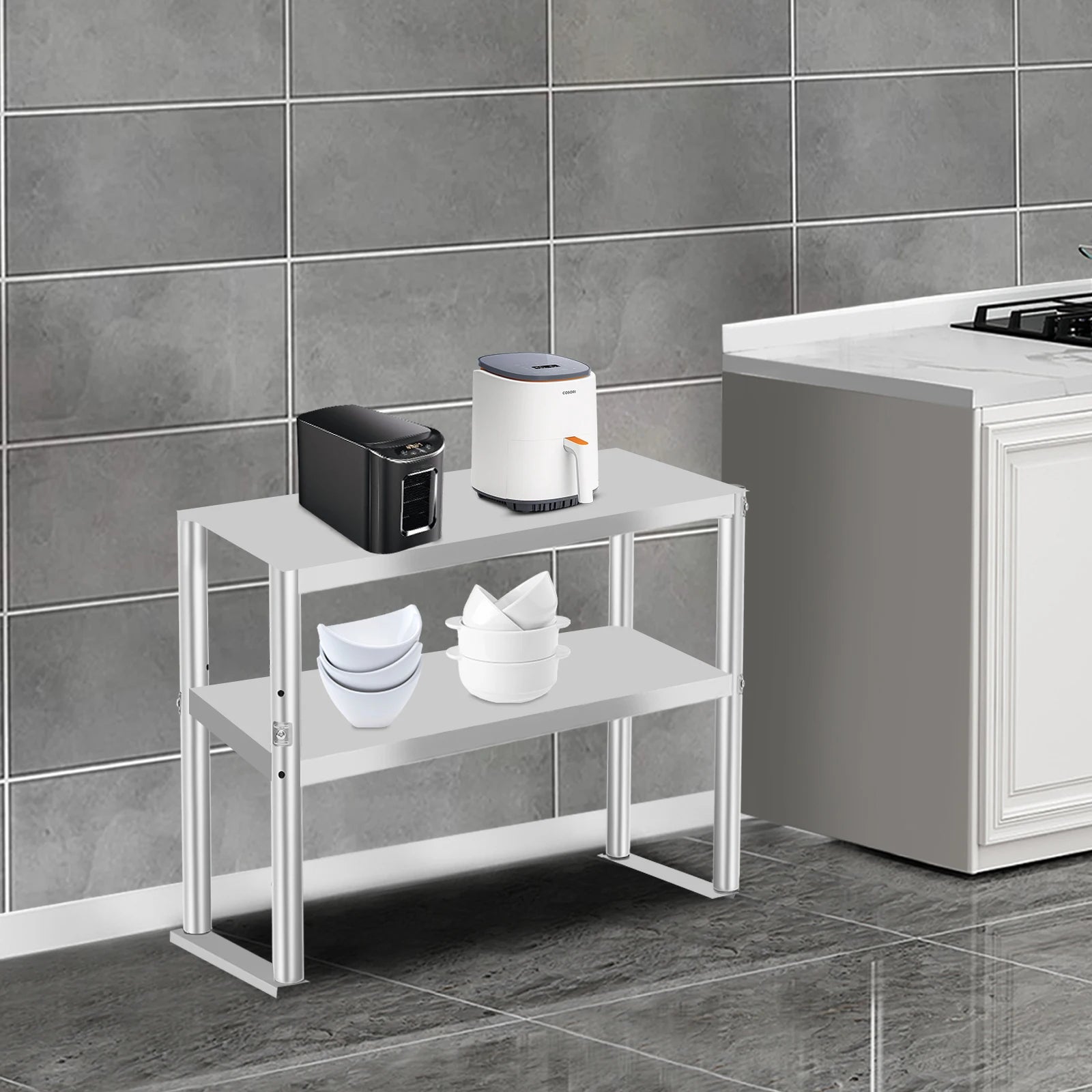 The double-tier design allows you to organize items efficiently, keeping your kitchen tidy and functional. Its adjustable height feature ensures compatibility with different surfaces, while the high-quality stainless steel construction guarantees longevity and easy cleaning.