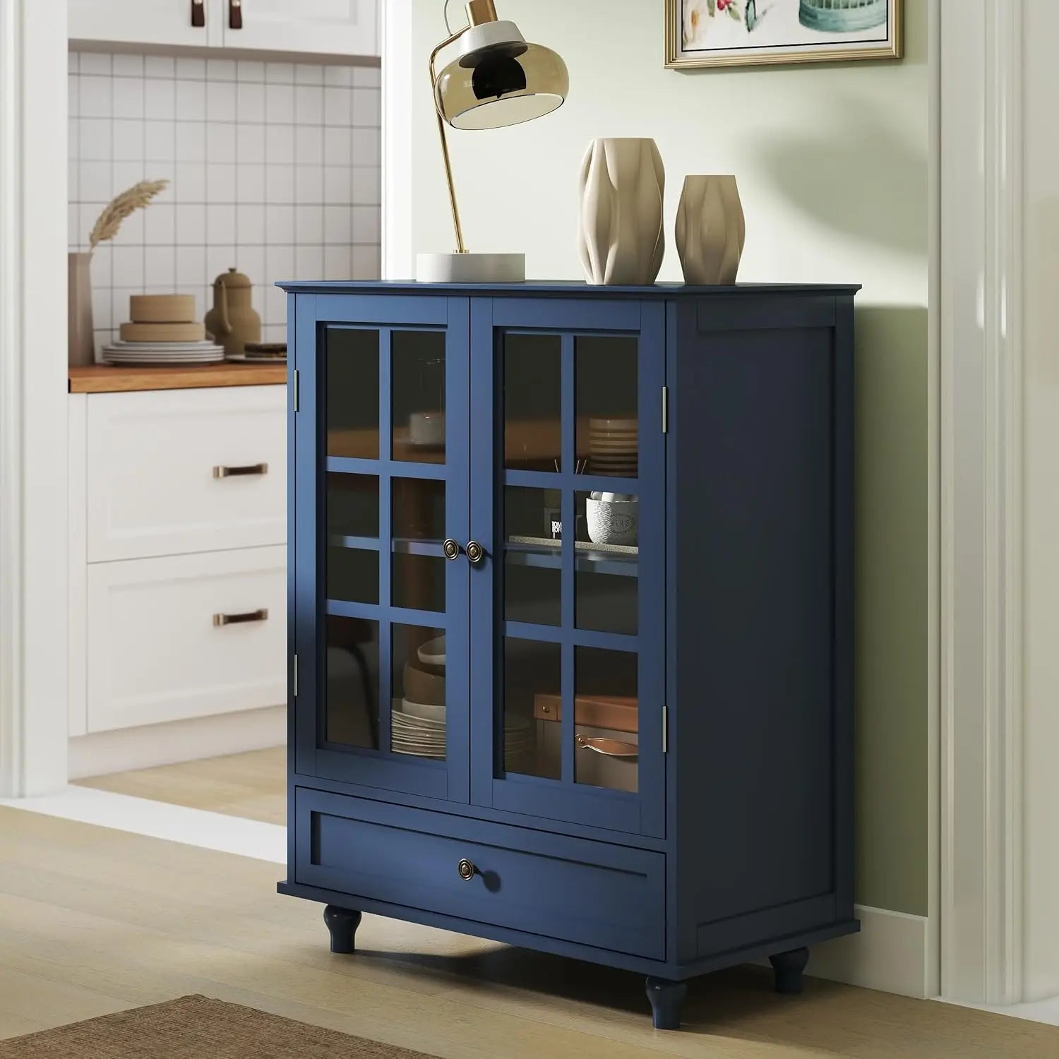 Upgrade your dining or living space with this Modern Wood Buffet Cabinet. Featuring glass doors and a convenient drawer, it provides stylish and practical storage for dishes, tableware, décor, or everyday essentials. The 28-inch accent cabinet blends seamlessly into contemporary or classic interiors, adding elegance and functionality to your home. Perfect for dining rooms, living rooms, or kitchens, this versatile cabinet keeps your space organized while elevating your décor. Durable construction ensures long-lasting use, making it a must-have furniture piece for modern households.