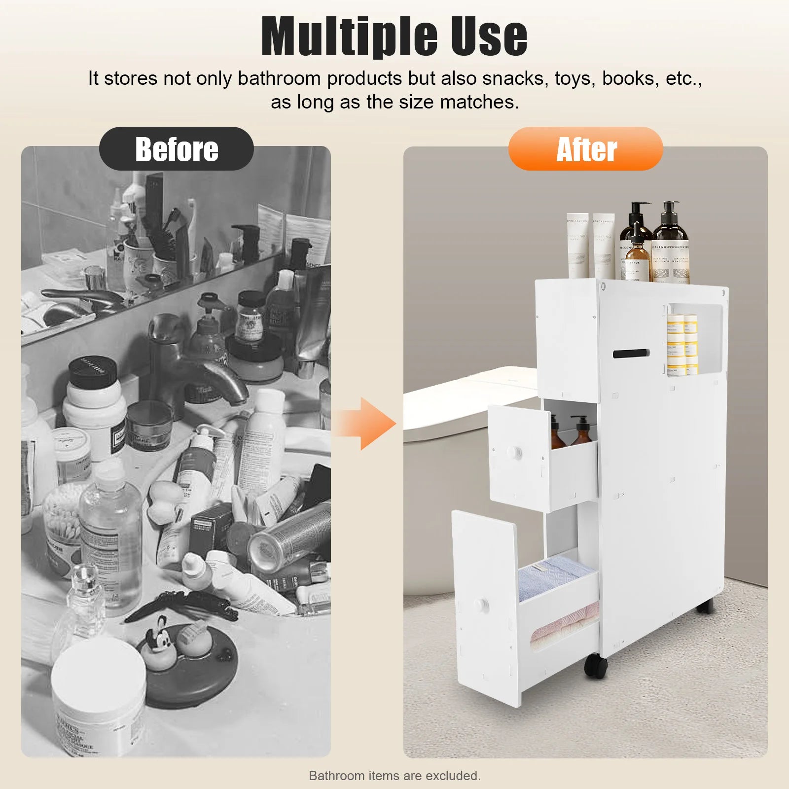 Narrow Bathroom Storage Cabinet Floor Drawer Organizer
