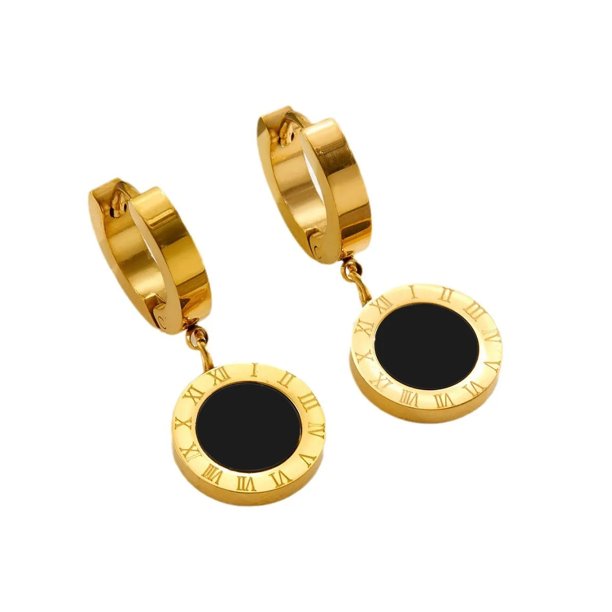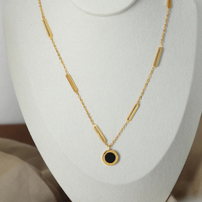 Elevate your look with this 4-piece Stainless Steel Jewelry Set, featuring a sleek black and white Roman numeral design that embodies timeless sophistication. The set includes a pendant necklace, bracelet, earrings, and ring—perfectly coordinated to add elegance to any outfit.